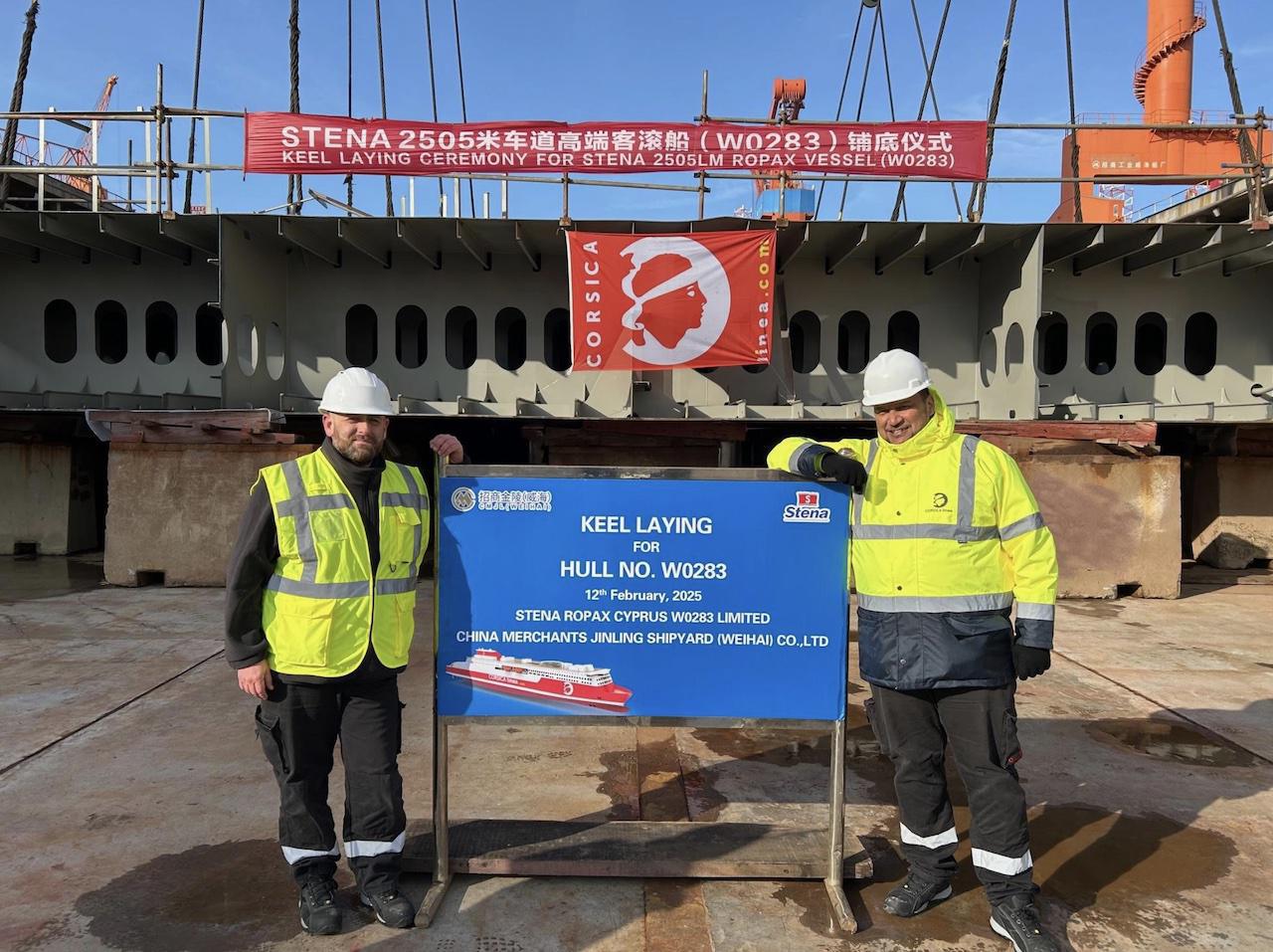 Un an après l’annonce de son deuxième navire propulsé au gaz naturel liquéfié, Corsica Linea a franchi une nouvelle étape dans la construction du Capu Rossu. La pose de la quille a eu lieu le 12 février sur le chantier naval chinois CMJL Jinling, à Weihai, sous la supervision de l’entreprise Stena RoRo, conceptrice du modèle E-Flexer. "Cette phase marque le début de l’assemblage du navire, qui devrait entrer en service en juin 2026. Un premier bloc de 240 tonnes a été installé au centre de la structure, là où seront placées les cuves de stockage du GNL." explique la compagnie,ie maritime dans un communiqué.