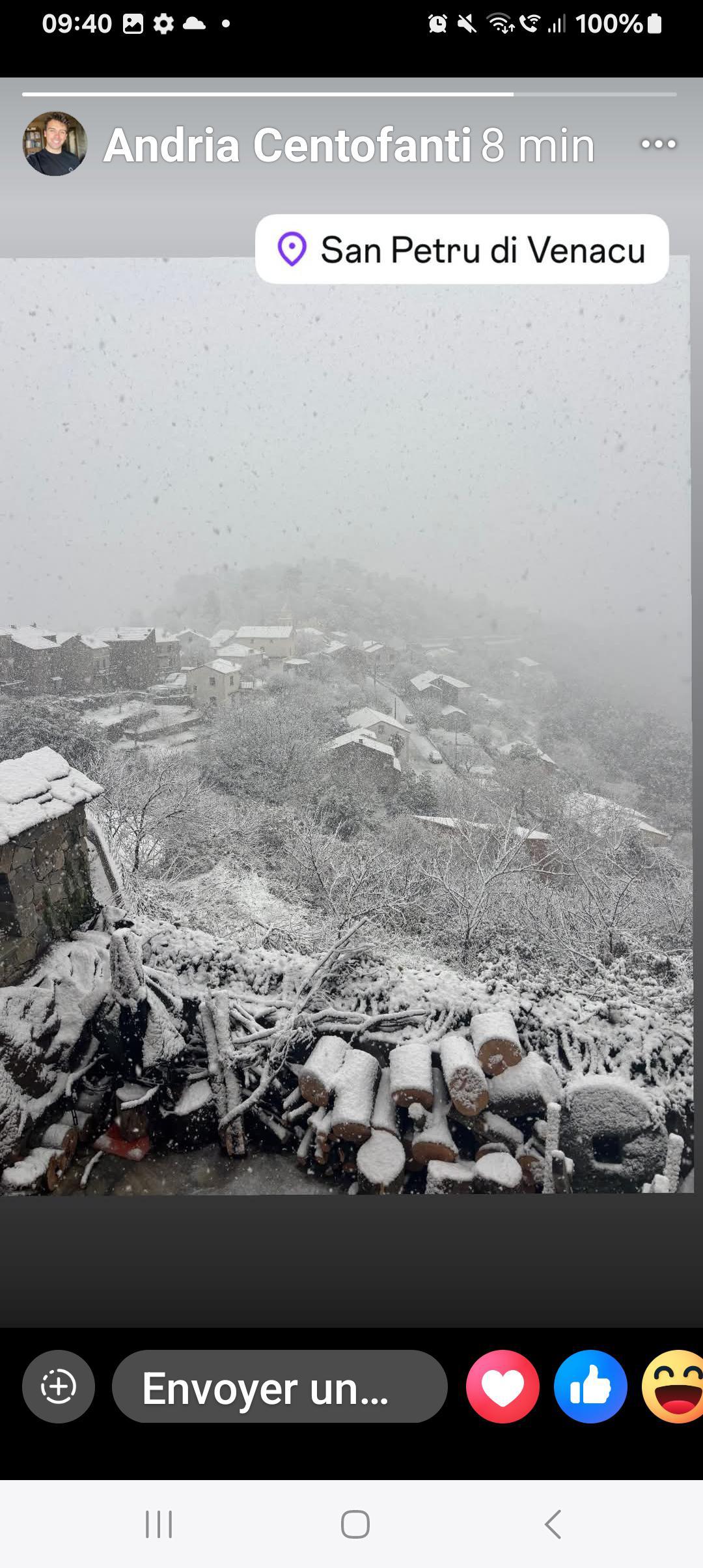 C’est un véritable temps de mois de janvier qui touche la Corse depuis la nuit dernière avec des chutes de neige à basse altitude puisque l’on constatait de gros flocons ce samedi matin à la hauteur de l’Hôtel Arena et du restaurant Le Refuge, dans la vallée de la Restonica situé à seulement 474 mètres ! Des flocons qui ont même surpris les habitants de Ponte-Leccia vendredi soir vers 21 heures… À Corte, la neige était mêlée à la pluie.