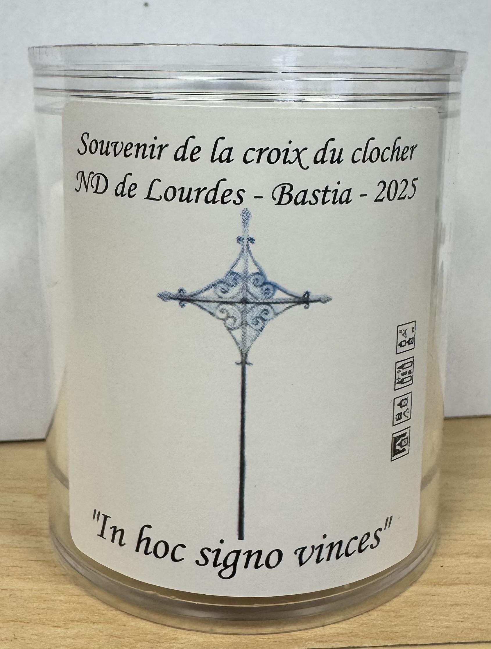 A l’occasion du scellement de la nouvelle croix au sommet du clocher, la paroisse a fait confectionner un demi-millier de bougies à l’effigie de celle-ci. Elles bruleront devant elle jusqu’à mardi.