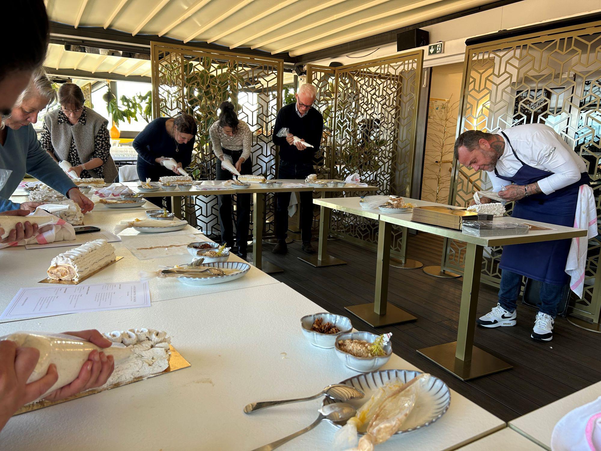 Sur le rooftop de l'hôtel Fesch, à Ajaccio, dans le cadre de l'opération "A chacun son Noël", l'Office Intercommunal du Pays Ajaccien proposait il y a quelques jours d'apprendre à réaliser une bûche de Noël grâce aux conseils experts de Franck Radiu, chef du restaurant "La Terrasse du Fesch" . Chaque plan de travail pour les participants avait été préparé avec goût : cuillère, fiche technique de la bûche aux saveurs emblématiques de l'hiver corse, poches de compotée de clémentines et crème montée aux marrons...