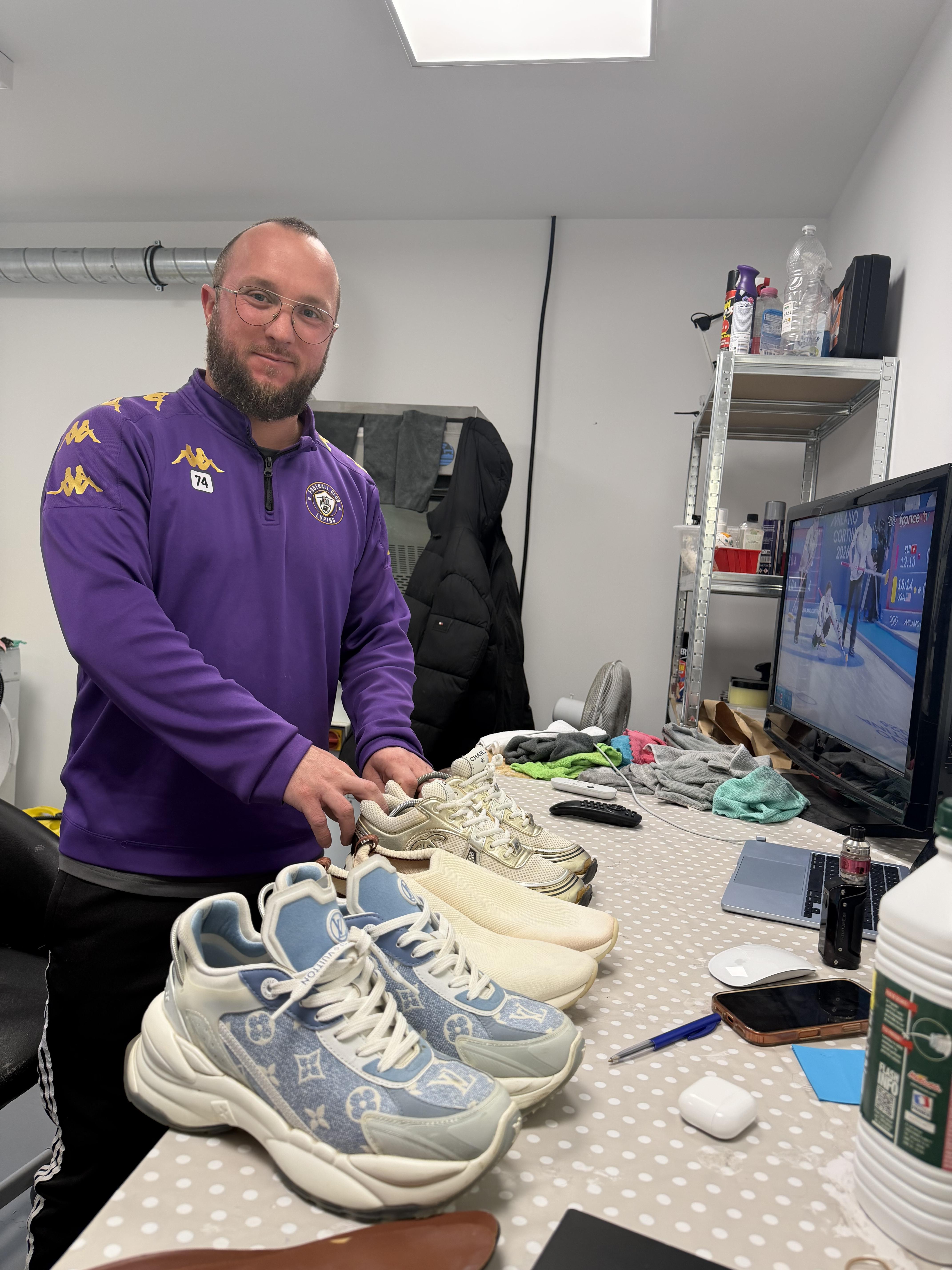 Contrairement aux idées reçues, la clientèle ne se limite pas aux jeunes amateurs de sneakers. De nombreuses personnes plus âgées confient également leurs paires ou articles en cuir.