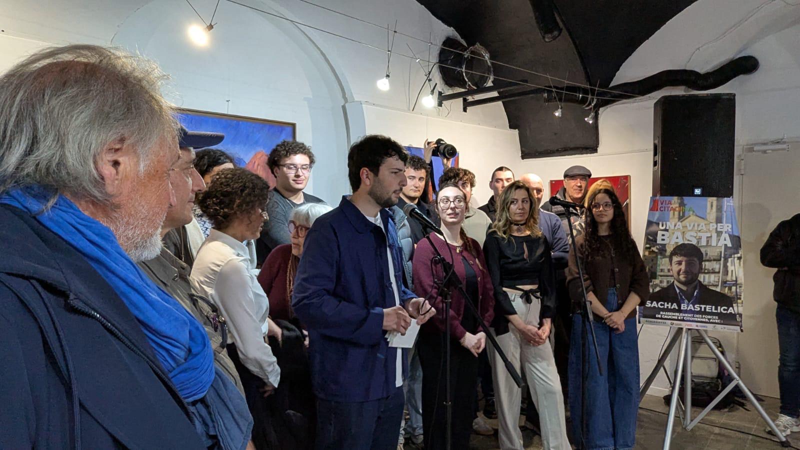 Sacha Bastelica (Via citadina) a présenté, samedi 28 février, dans une galerie d’art sur la place du Marché de Bastia, la liste qu’il conduira lors des élections municipales des 15 et 22 mars prochains. Celui qui définit sa démarche comme la seule véritablement de gauche regroupe autour de lui Ecologia Sulidaria, Europe Écologie-Les Verts, Inseme à Manca, Ghjuventù di Manca ainsi que le Parti animaliste.
