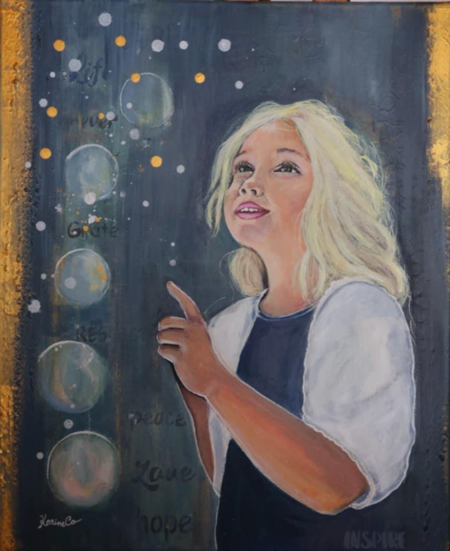 Pour l’occasion, elle a choisi de donner une œuvre particulière, représentant une enfant regardant vers la lumière. « Je trouve que ce message correspond bien au Secours Catholique : redonner de la confiance et de l’espoir. Si mon travail peut contribuer, même modestement, à aider quelqu’un, alors cela aura beaucoup de sens pour moi. »