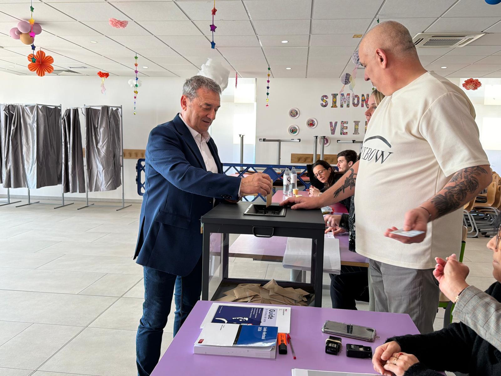 Le leader de la liste "Gagner pour Ajaccio", François Filoni, a voté vers 10 heures à l'école Simone Veil, dans le quartier des Salines.
